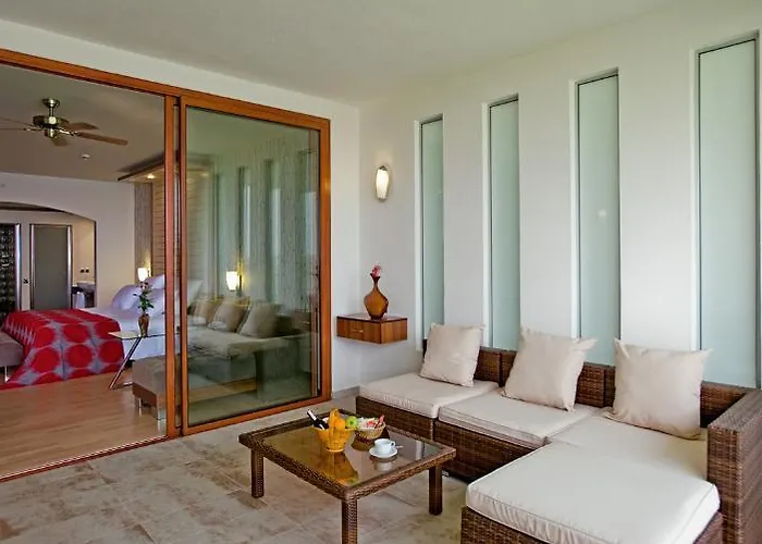 A Side városi Defne Kumul Suite kínálatából felár ellenében fitneszközpont és spa terápia foglalható.